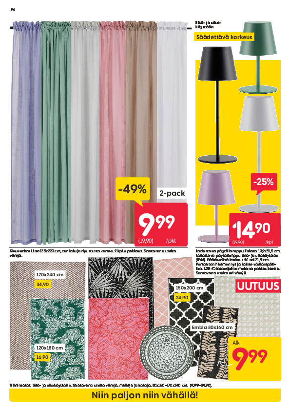 Katselet tällä hetkellä kaupan Rusta tarjouslehteä, jonka voimassaoloaika alkaa 14.04.2025 ja päättyy 21.04.2025. Nämä selailtavissa olevat tarjouslehdet ovat itse Rusta verkkoon toimittamia. Emme julkaise lehtisiä kaupoista joiden tarjousten voimassaoloista emme voi olla varmoja. Näin ollen löydät sivuiltamme vain laadukkaat, korkealaatuiset ja ajankohtaiset esitteet ja kuvastot.