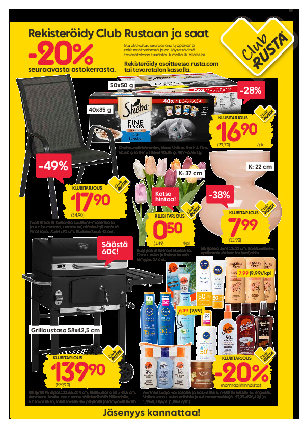 Katselet tällä hetkellä kaupan Rusta tarjouslehteä, jonka voimassaoloaika alkaa 14.04.2025 ja päättyy 21.04.2025. Nämä selailtavissa olevat tarjouslehdet ovat itse Rusta verkkoon toimittamia. Emme julkaise lehtisiä kaupoista joiden tarjousten voimassaoloista emme voi olla varmoja. Näin ollen löydät sivuiltamme vain laadukkaat, korkealaatuiset ja ajankohtaiset esitteet ja kuvastot.