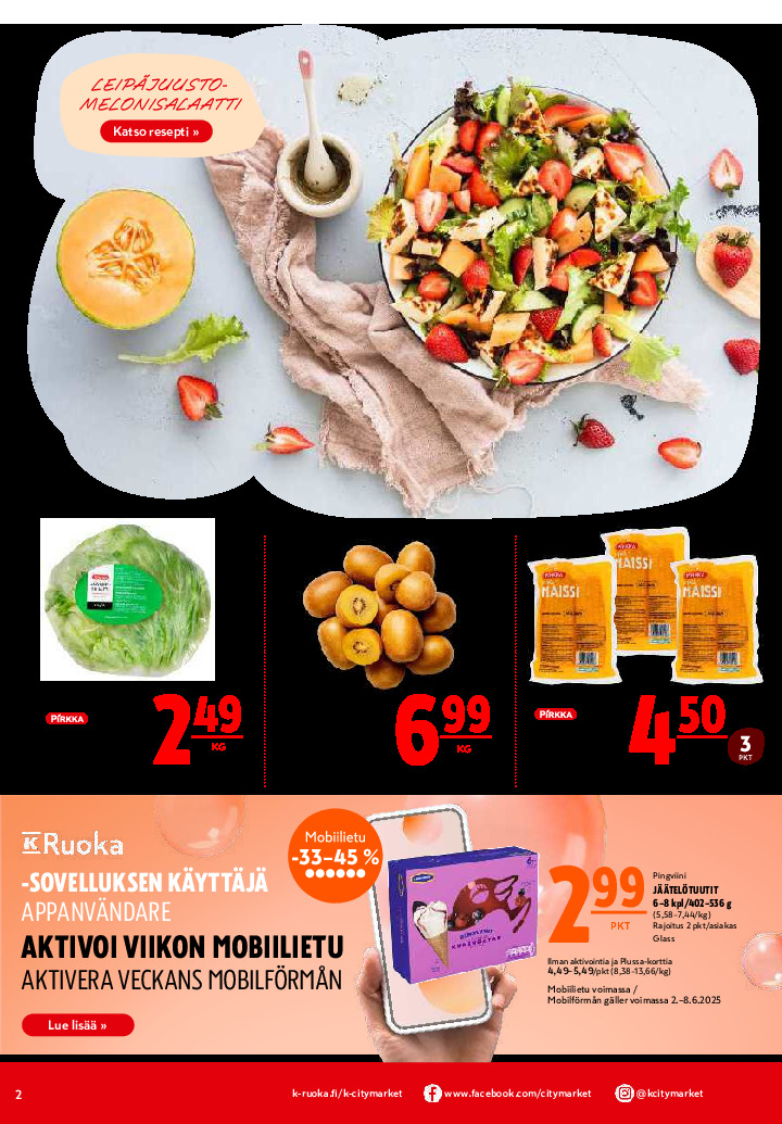 Katselet tällä hetkellä kaupan K-citymarket tarjouslehteä, jonka voimassaoloaika alkaa 02.06.2025 ja päättyy 04.06.2025. Nämä selailtavissa olevat tarjouslehdet ovat itse K-citymarket verkkoon toimittamia. Emme julkaise lehtisiä kaupoista joiden tarjousten voimassaoloista emme voi olla varmoja. Näin ollen löydät sivuiltamme vain laadukkaat, korkealaatuiset ja ajankohtaiset esitteet ja kuvastot.
