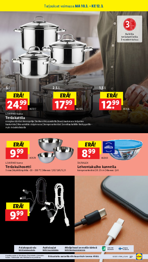 Katselet tällä hetkellä kaupan Lidl tarjouslehteä, jonka voimassaoloaika alkaa 06.03.2025 ja päättyy 12.03.2025. Nämä selailtavissa olevat tarjouslehdet ovat itse Lidl verkkoon toimittamia. Emme julkaise lehtisiä kaupoista joiden tarjousten voimassaoloista emme voi olla varmoja. Näin ollen löydät sivuiltamme vain laadukkaat, korkealaatuiset ja ajankohtaiset esitteet ja kuvastot.