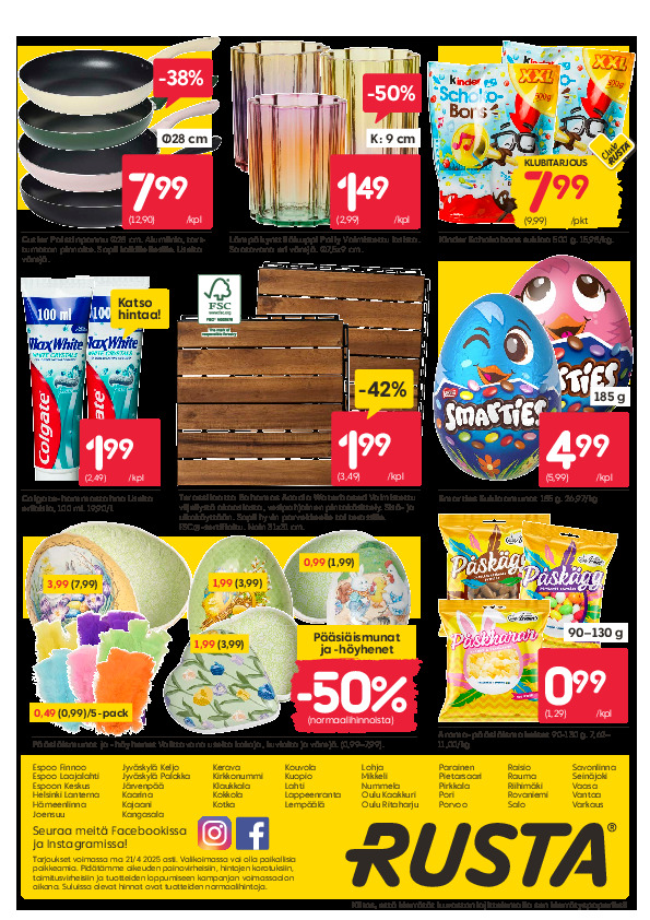 Katselet tällä hetkellä kaupan Rusta tarjouslehteä, jonka voimassaoloaika alkaa 14.04.2025 ja päättyy 21.04.2025. Nämä selailtavissa olevat tarjouslehdet ovat itse Rusta verkkoon toimittamia. Emme julkaise lehtisiä kaupoista joiden tarjousten voimassaoloista emme voi olla varmoja. Näin ollen löydät sivuiltamme vain laadukkaat, korkealaatuiset ja ajankohtaiset esitteet ja kuvastot.